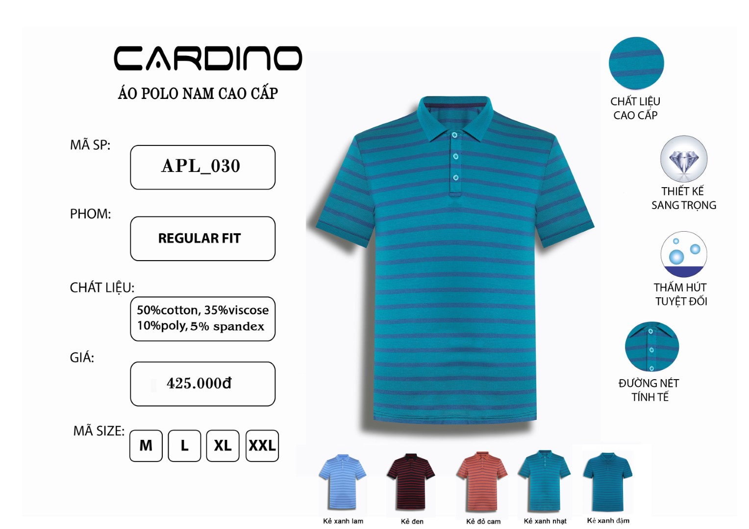Chất liệu áo polo nam cardino APLO030: 50%cotton, 35% Viscose, 10% poly, 5% spandex