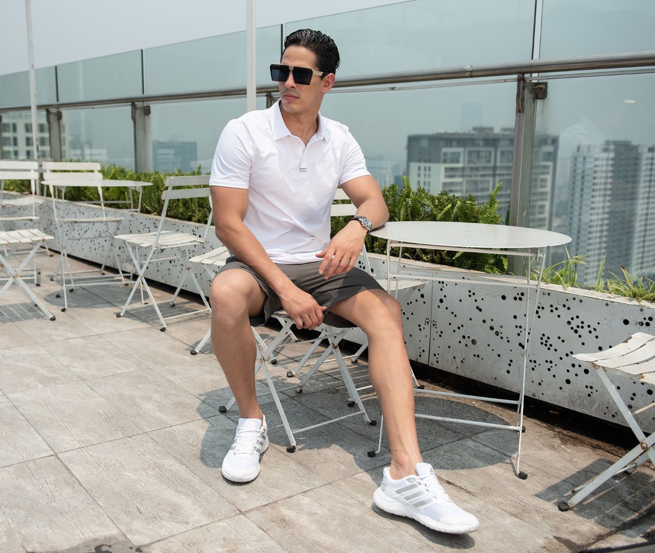 Thiết kế tay ngắn, cổ bẻ, có 3 cúc ở cổ