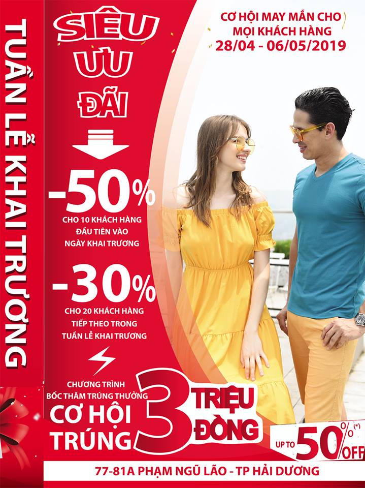 ???? Chào đón tuần lễ khai trương tại 77-88A Phạm Ngũ Lão – TP. Hải Dương Nhiều ưu đãi hấp dẫn , Từ ngày 28/04/2019 đến 08/05/2019