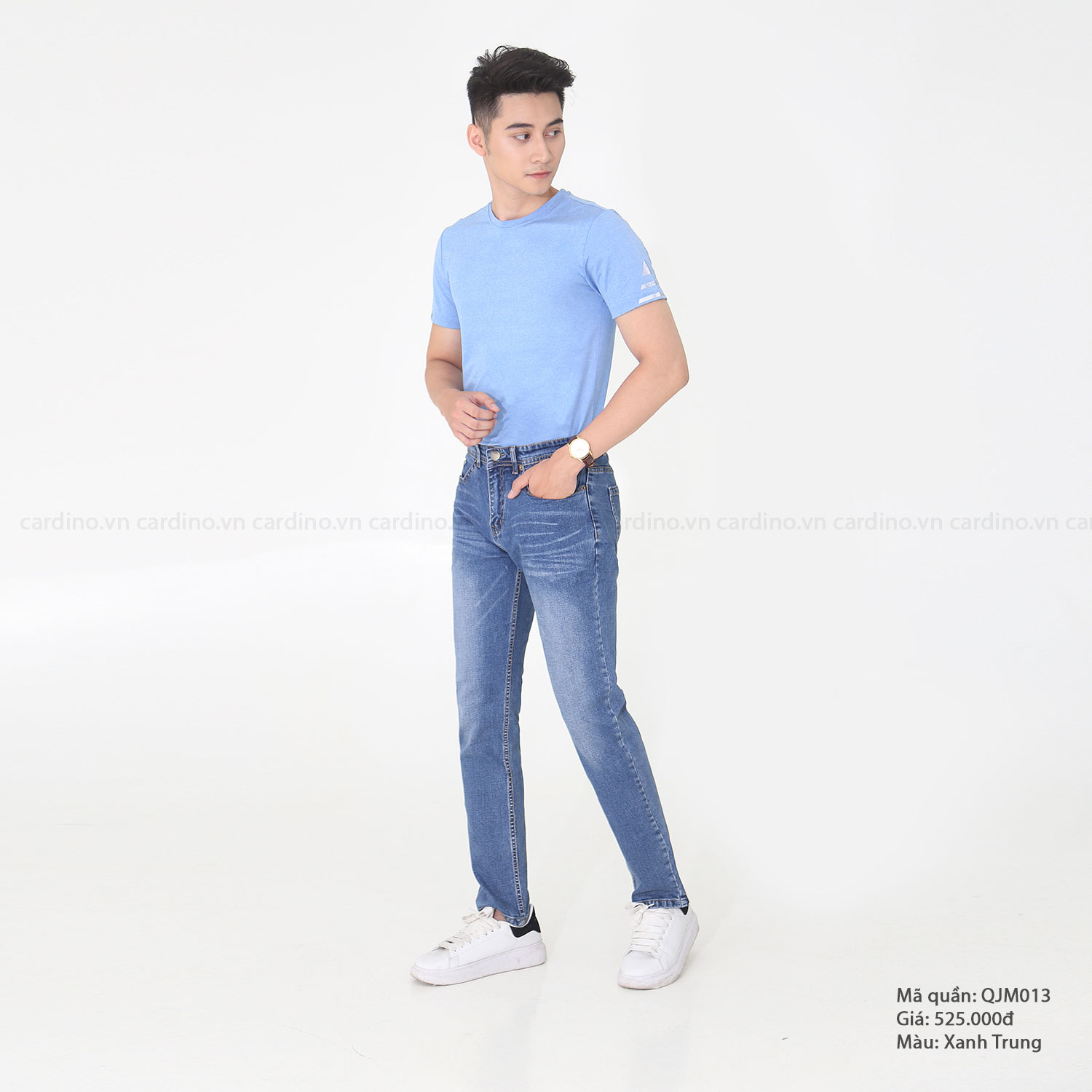 Được thiết kế kiểu dáng SLIM FIT, sản phẩm QJM014 là mẫu quần bò co giãn trẻ trung, năng động và không kém phần nam tính.